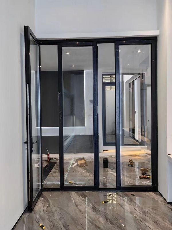Les portes pliantes en verre d'aluminium à double ou triple vitrage ont plusieurs panneaux de verre avec un espace entre eux qui est souvent rempli de gaz argon.,l'amélioration de l'efficacité énergétique globale.